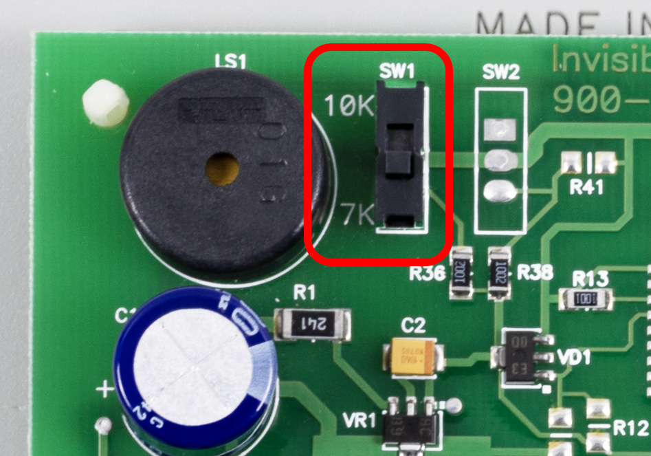 Remove the cover from your wall-mounted transmitter. There will be a small black switch set to either 7K or 10K
